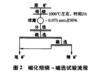 由于采用該工藝需要購買價格較高的磁選機設備,而且經(jīng)過磁選的鐵精礦品位不是很高,其褐鐵礦售價也不是高,產(chǎn)品只能出售給小型鋼鐵企業(yè)。為了提高產(chǎn)品質(zhì)量,在經(jīng)過強磁選的基礎上還進行了磁化焙燒試驗。