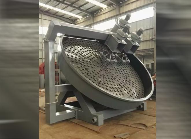 圓盤(pán)造粒機(jī)是有機(jī)肥行業(yè)的常用設(shè)備之一,一般適用于中、低濃度,小規(guī)模的生產(chǎn),成球盤(pán)調(diào)整到40°-55°之間。由電機(jī)減速機(jī)帶動(dòng)齒輪從而加入混配好的原料肥。由于粉肥和圓盤(pán)旋轉(zhuǎn)而上升,又在重力的作用下向下滾動(dòng),在以上幾種力的作用下,盤(pán)內(nèi)物料逐漸形成基核直至達(dá)到成品顆粒,由圓盤(pán)邊溢出。本機(jī)具有成球率高、顆粒圓潤(rùn)、強(qiáng)度大、防腐、操作直觀、維修方便等特點(diǎn)。